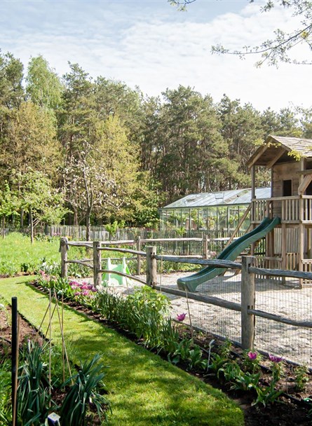 In onze tuin kan je genieten van het weidse landschap , het fluiten van de vogels , de bloemenpracht en de vele vlinders .De kinderen kunnen zich uitleven in het speeltuintje met grote zandbak , spelen in de weide , fietsen op het erf, ...